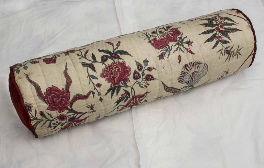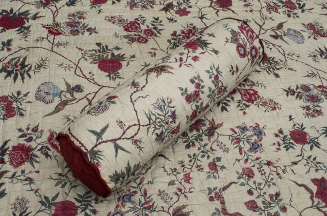 Sitsen bedrol met grote naturalistische bloemmotieven op witte grond