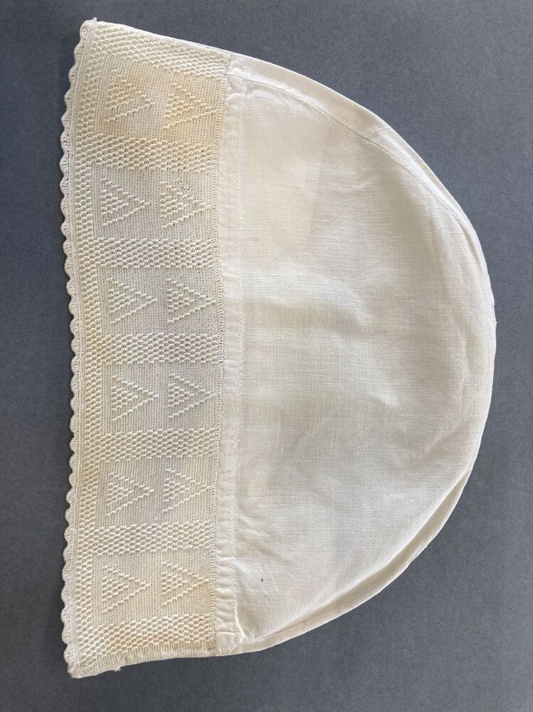 Witte Friese tipmuts of ondermuts met gehaakte achterstrok met driehoekjes