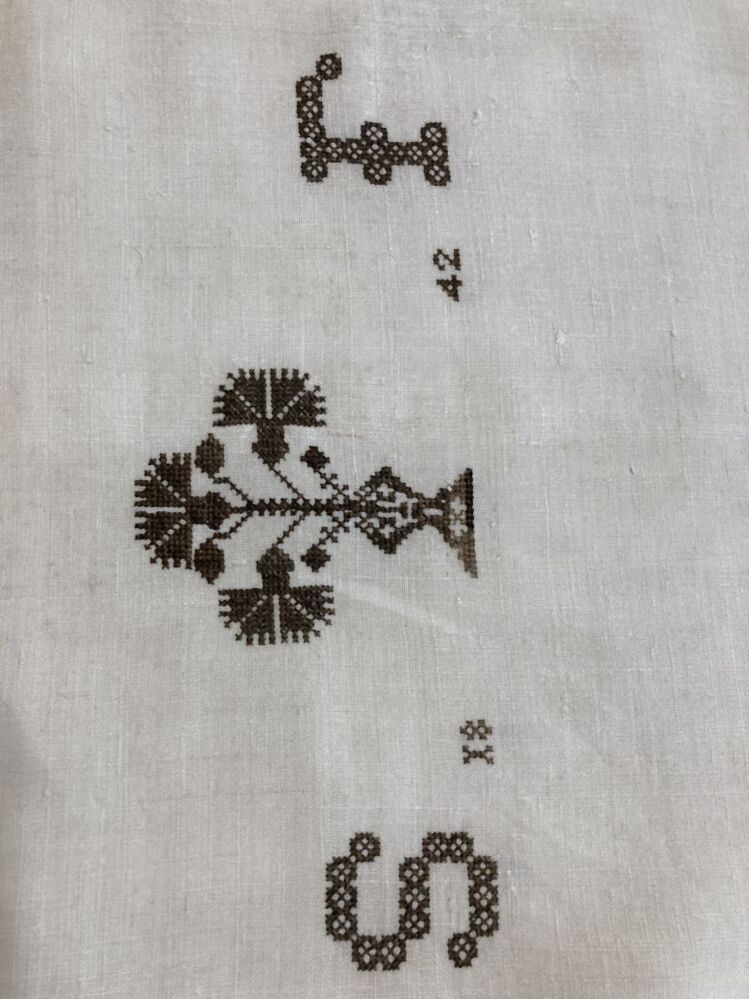 Wit linnen laken met zwart geborduurd monogram SF 1842