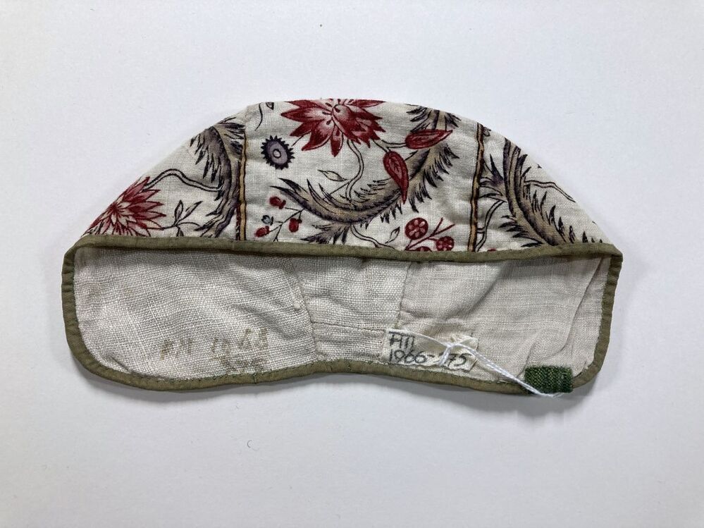Meisjesmuts, geveerde bladeren en bloemranken op witte grond
