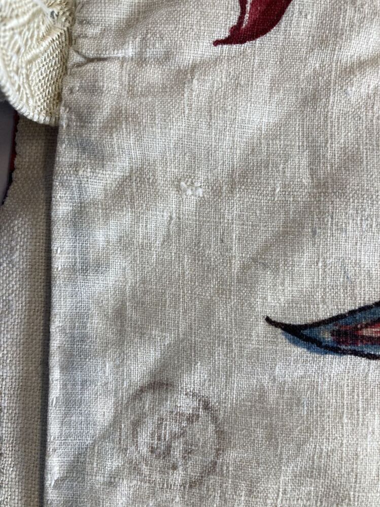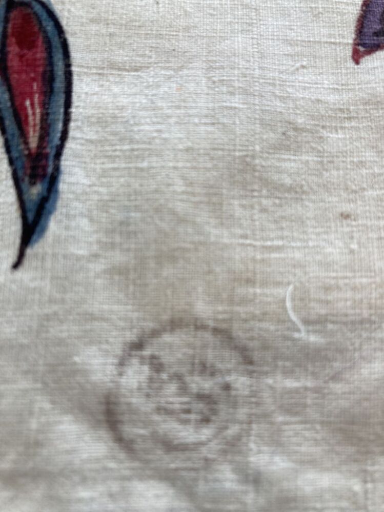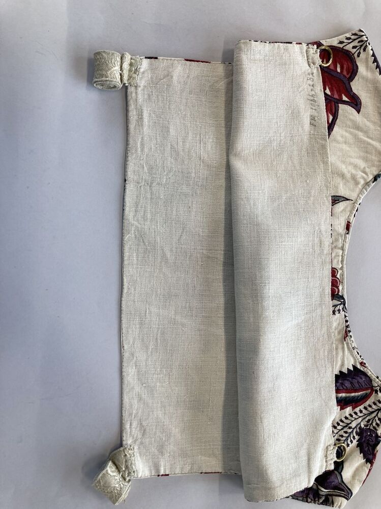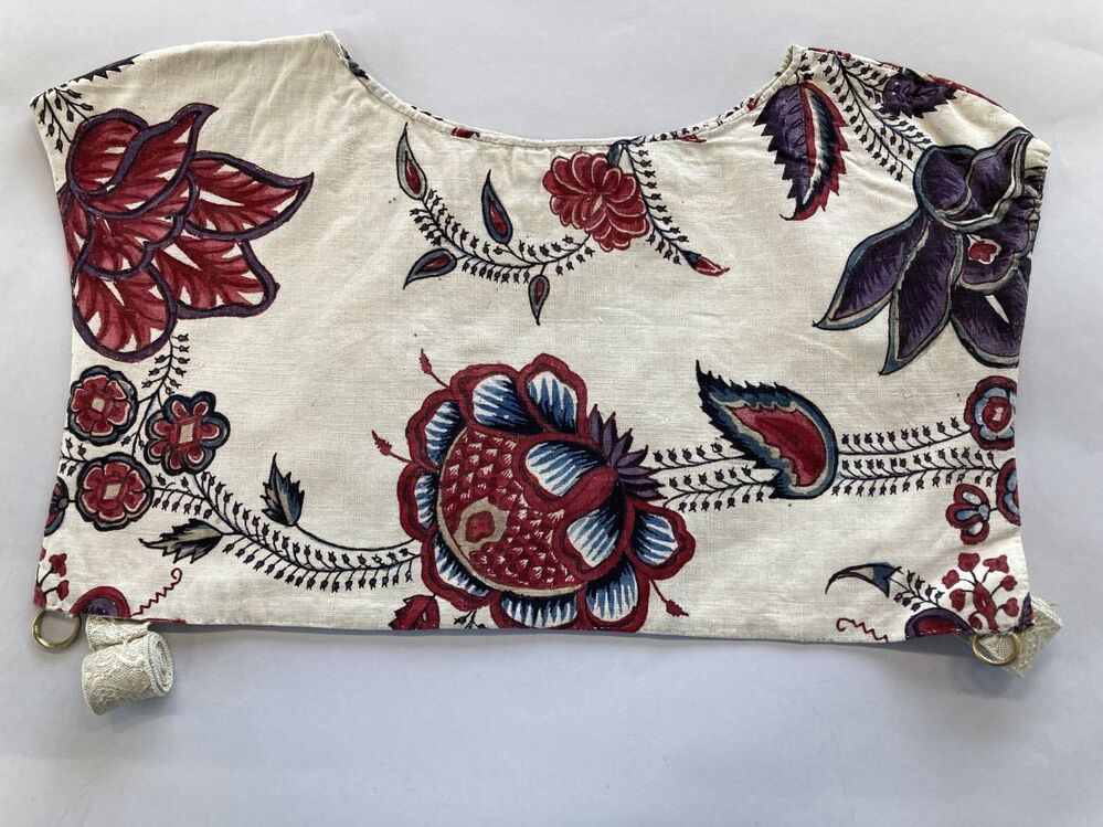 Sitsen vrouwenkroplap ofwel onderst, met grote bloemen aan dunne stengels op witte grond