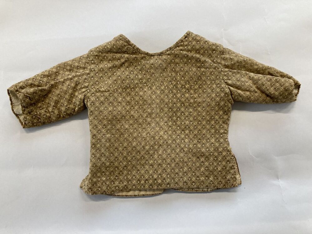 Jakje van geel-groen bedrukt katoen gevoerd met wit linnen