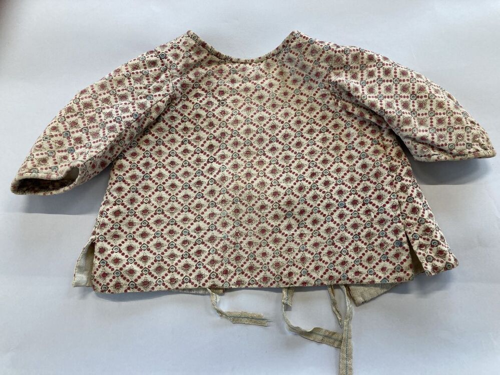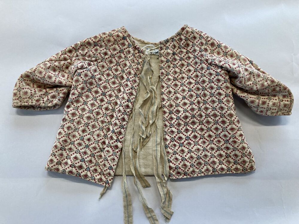 Bedrukt katoenen babyjakje, net driekwart mouwen, ruitmotief op witte grond