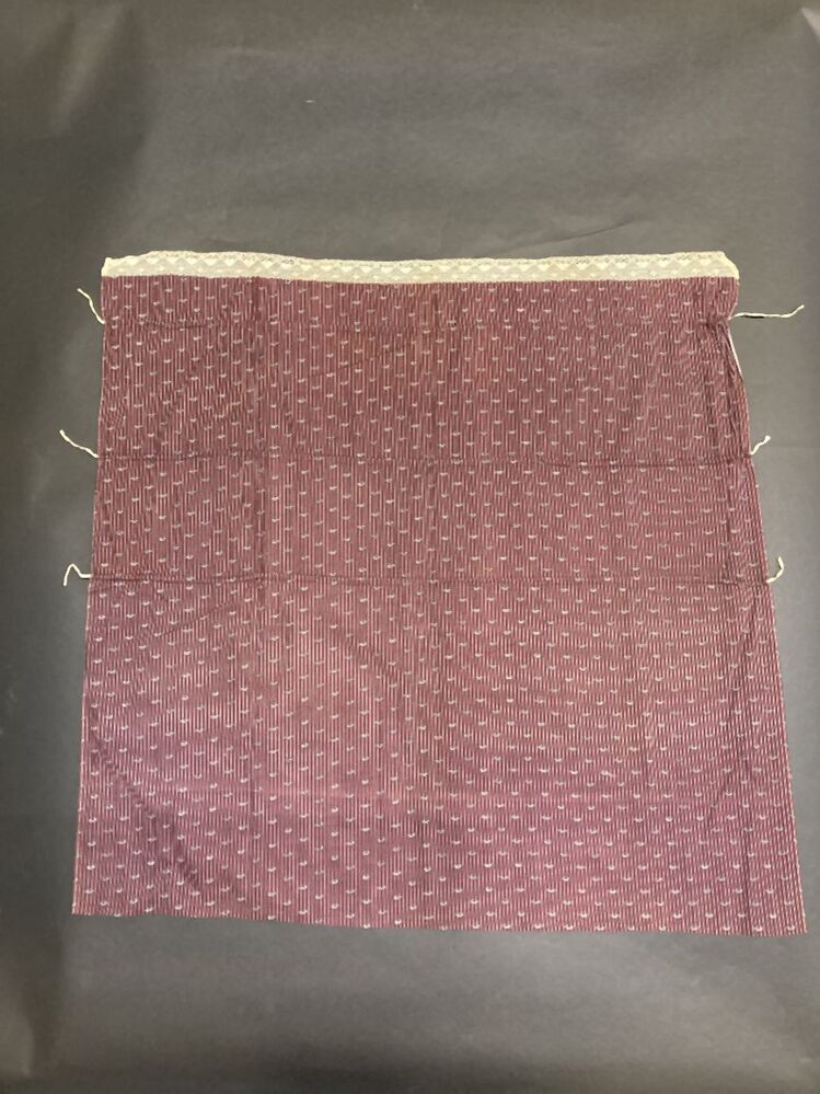 Pakdoek van bedrukte katoen, gestreept donker rood:lichtpaars met ruit-vormig strooimotiefjes,