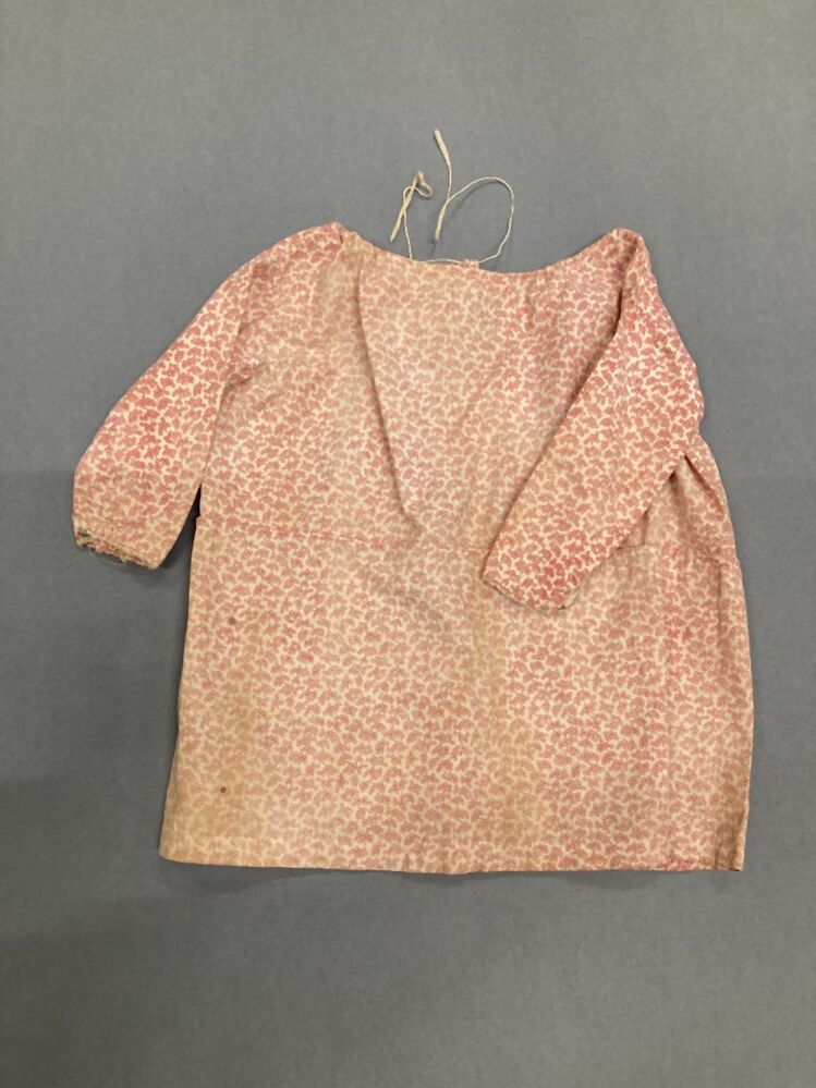 Japonnetje met lange mouwen van bedrukte katoen met roze besjes