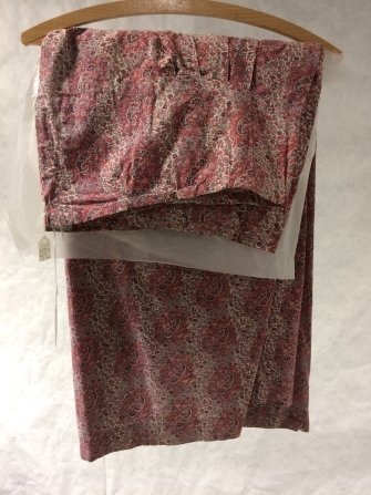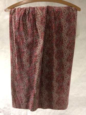 Plooirok gemaakt van een rok van bedrukt katoen met roze kasjmierpatroon van een Biedermeier kostuum