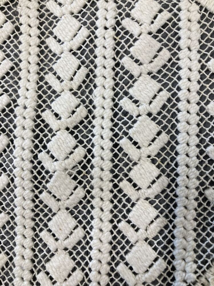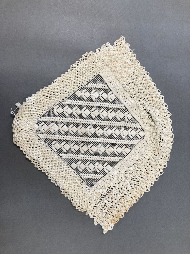 met bol van filetknoopwerk enhanekamWit katoenen gehaakte muts