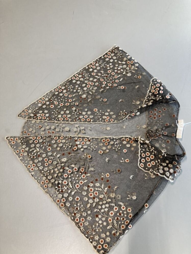 Fichu met kraagje van zwarte tule, geborduurd met wit en rood garen
