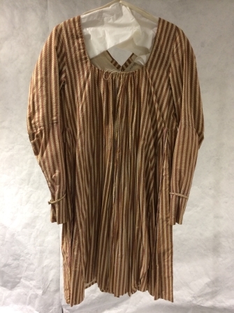 Empire jak van donkerrood-geel gestreept bedrukt katoen met lange schoot en lange mouwen