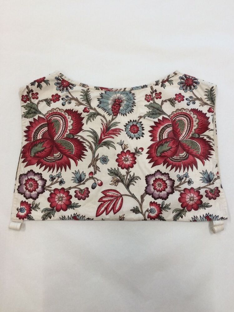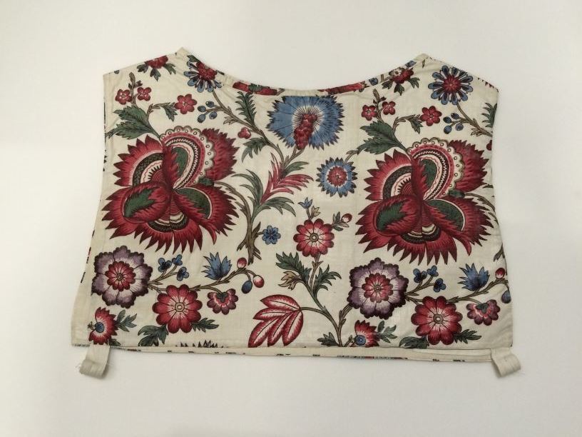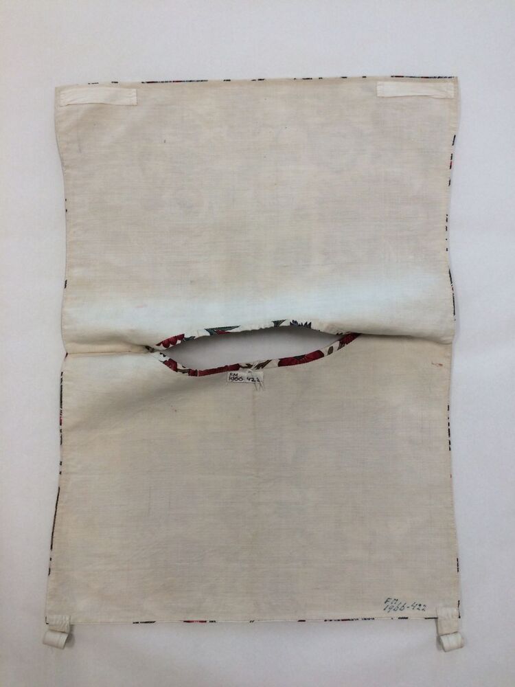 Sitsen vrouwenkroplap ofwel onderst, bedrukt met gestileerde takken met fantasiebloemen op witte grond