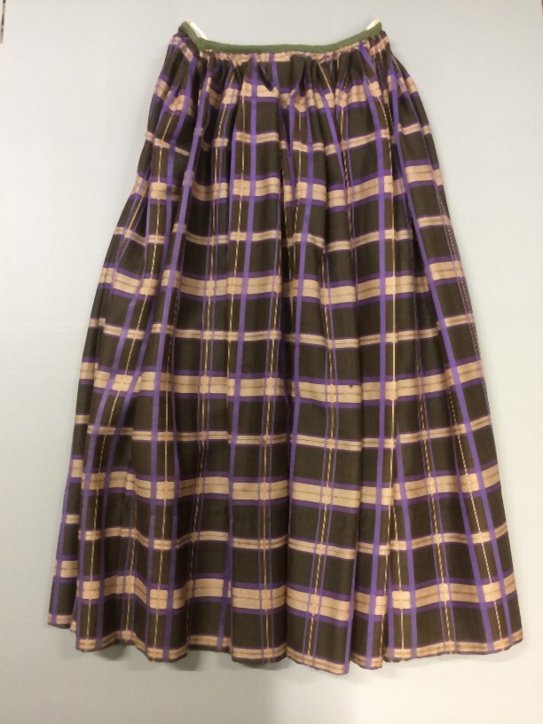 Geplooide rok van geruite wol zwart, paars, beige
