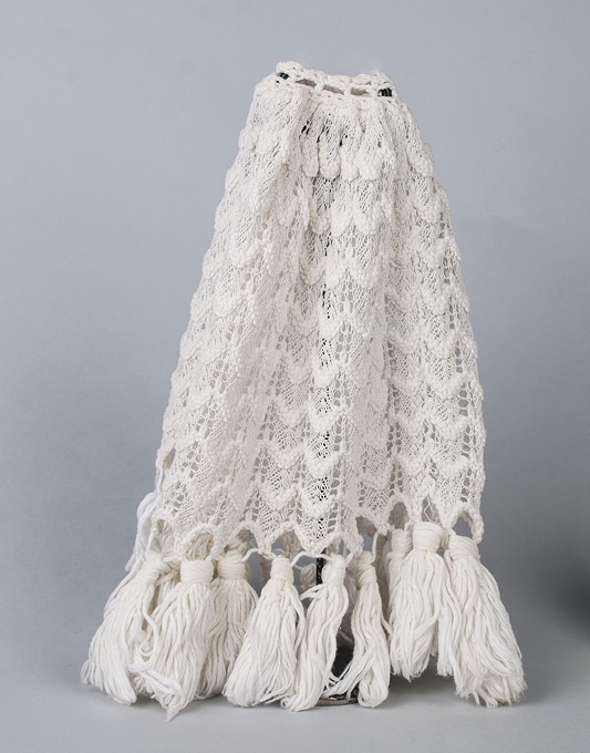Gebreid lampenkleedje van wit katoen met franje
