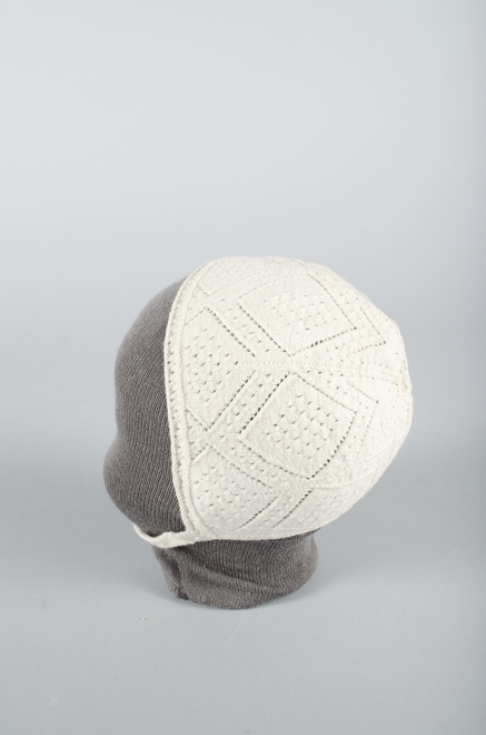 Muts van wit katoen ajour gebreid, bol met dubbele zespuntige ster