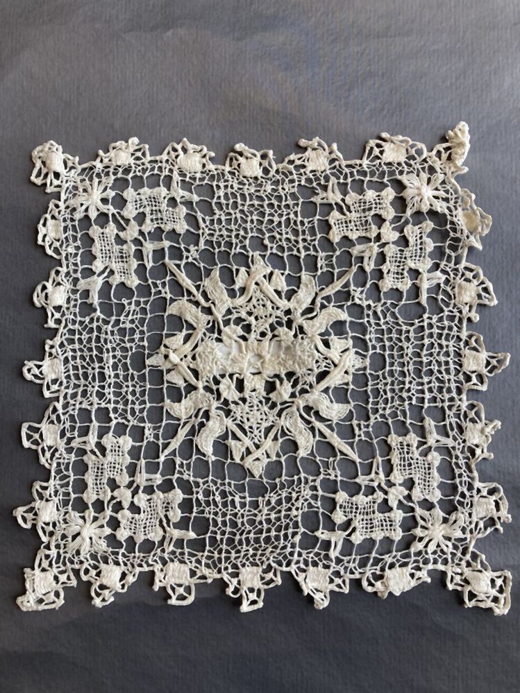 Kleedje van filetwerk, met doorstopwerk