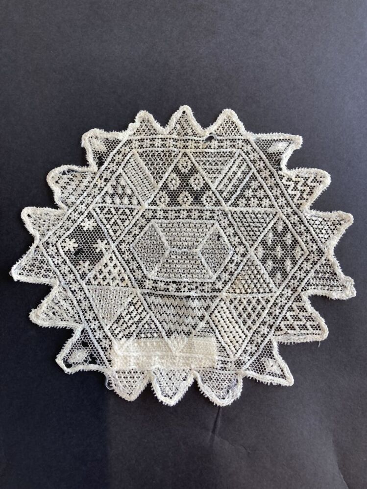 stervormig proeflapje van tule, met veelsoortig doorstopwerk,