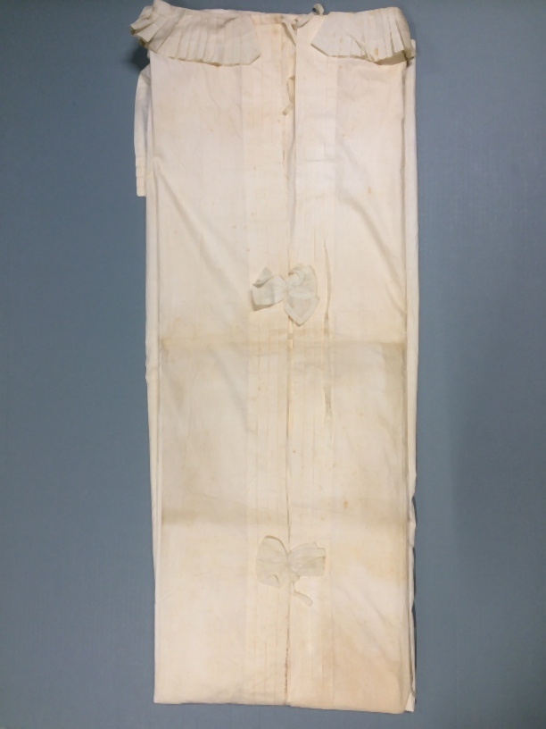 Doodshemd van witte katoen met een geplooid boordje langs de hals