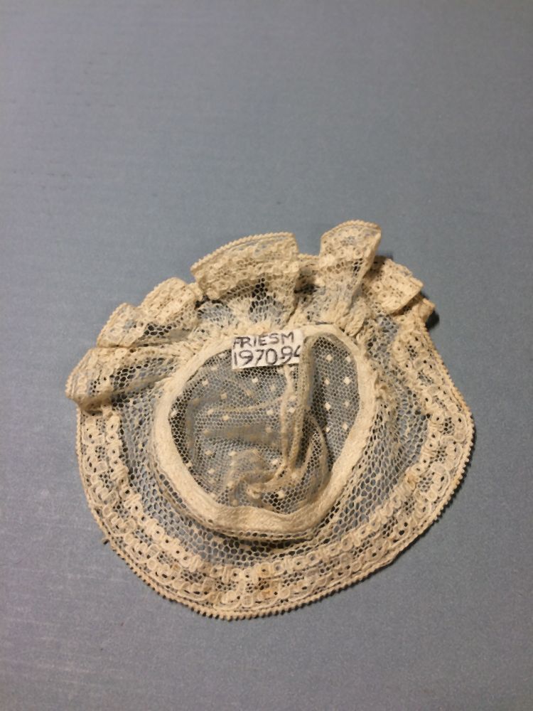 Kleine mutsen voor binnenshuis, met een enkele of dubbele sierstrook als rand aan de voorkant en tot de oren reikend; werden door vrouwen in de 18e eeuw gedragen. (AAT) https://data.cultureelerfgoed.nl/term/id/cht/63d7c4b6-1fa2-4798-b701-ea7115827662