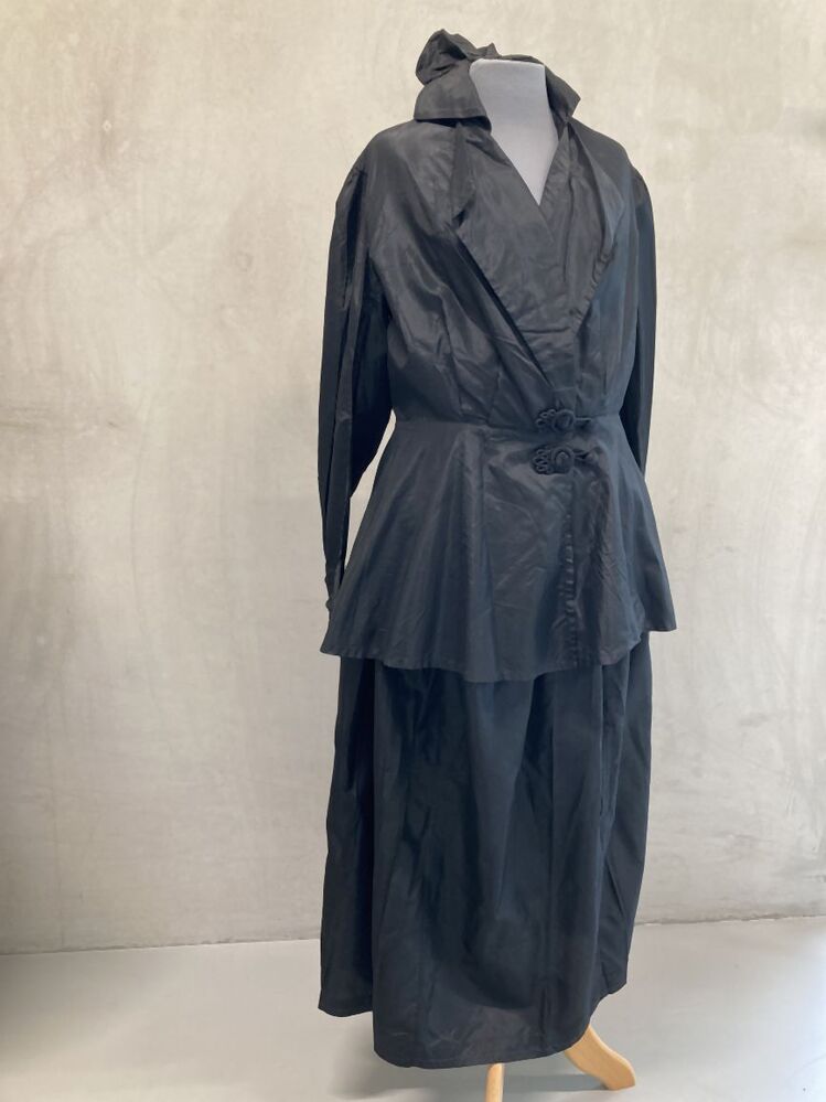 Rok van zwarte taftzijde van mantelpak