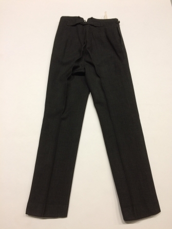 Grijs-zwarte lange broek van wol met gulpsluiting,