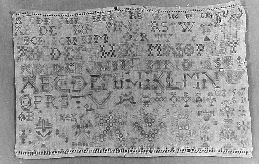 Lettermerklap met open zomen, gemerkt AS, 1750