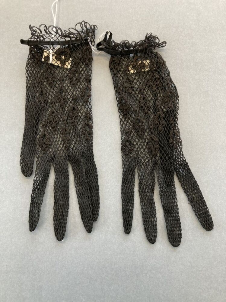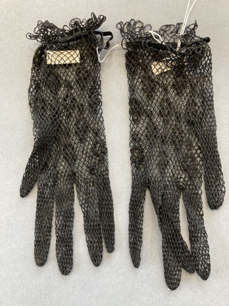 Paar handschoenen van zwart katoen, filet geknoopt