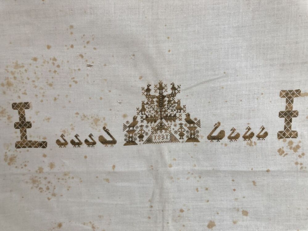 Een wiegelaken van fijn linnen met monogramborduursel LI 1831