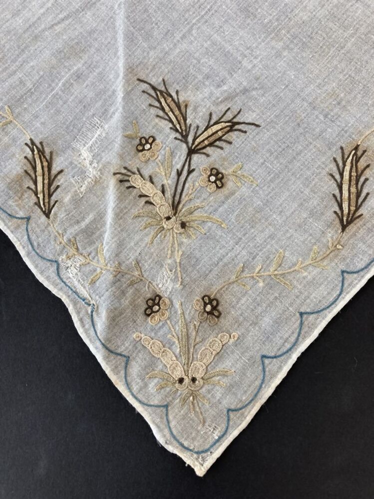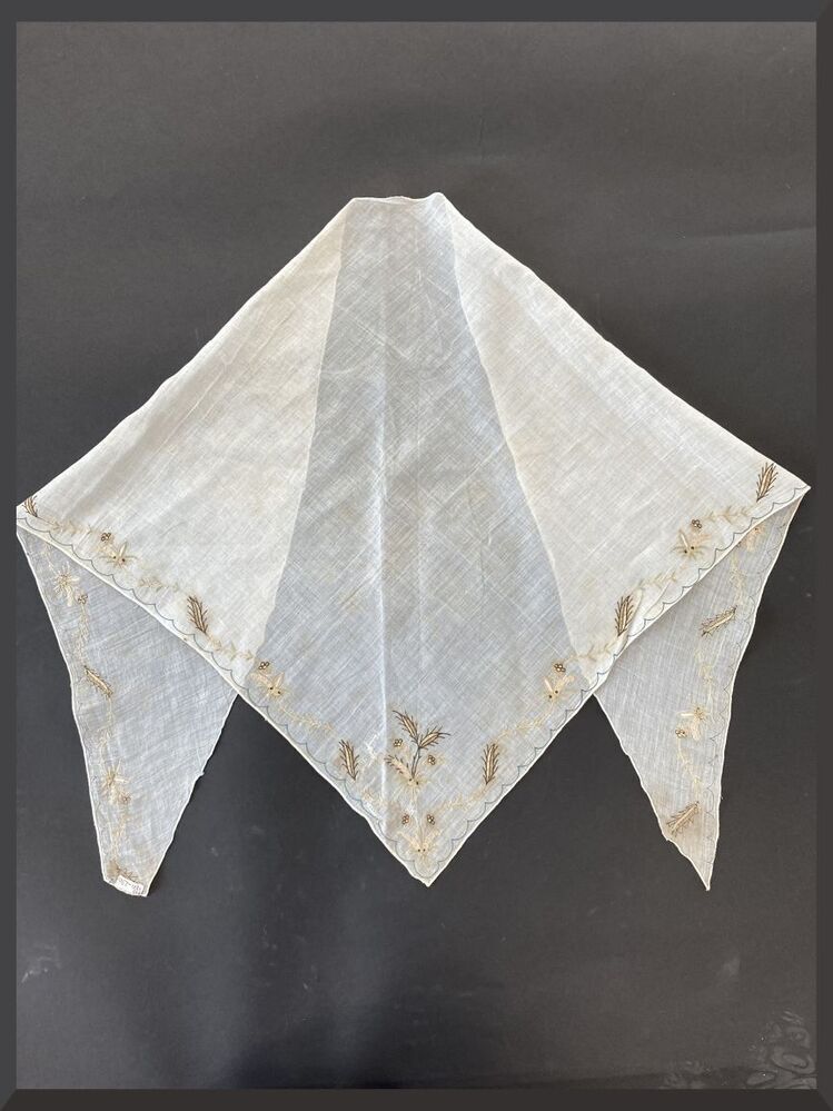 Fichu getamboereerd met schulpen, bloemrank en boeketje aren