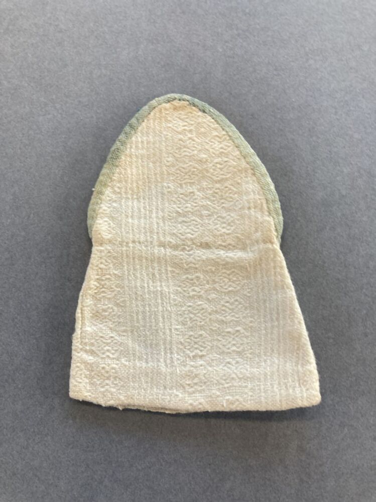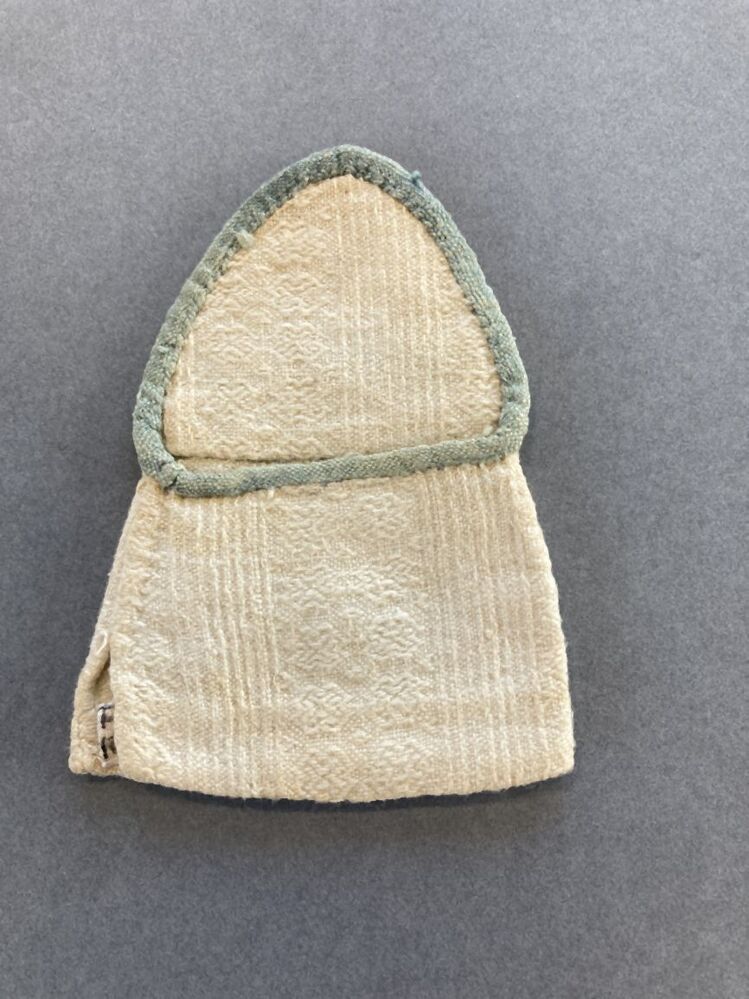 Enkel polsmouwtje van witte piqué, afgewerkt met groene katoen