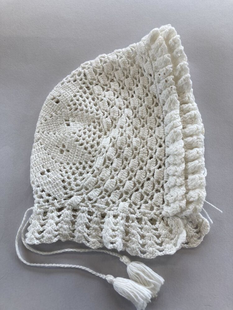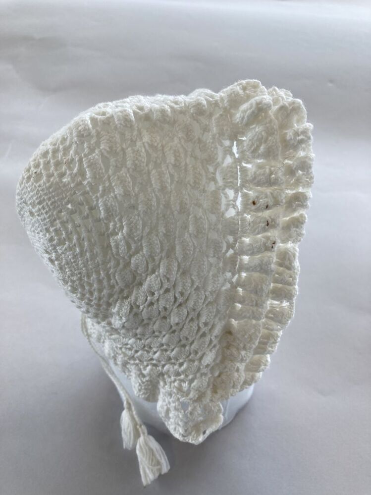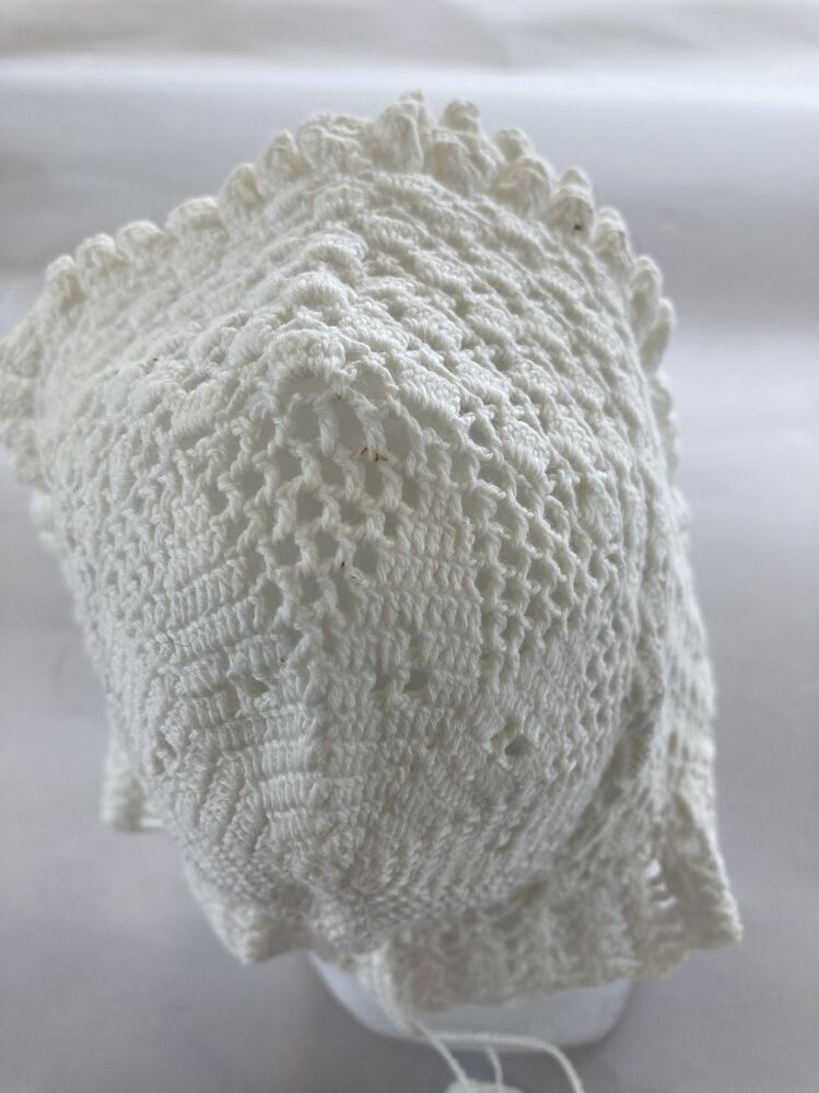 Muts van wit katoen gehaakt met achtpuntige ster ,met 'hanekam'