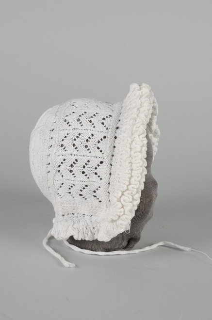 Muts van wit katoen ajour gebreid met rondom ruche