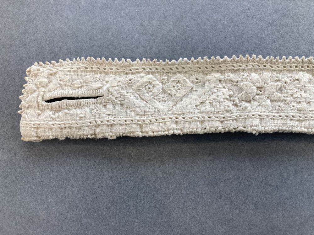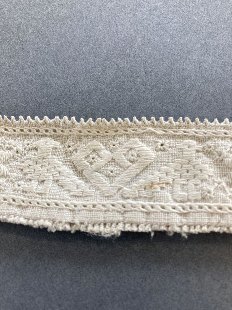 Wit linnen hemdboord met traditioneel borduursel met vogels