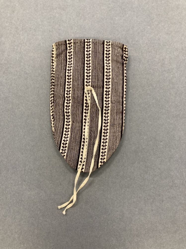 Polsmofje van bedrukte katoen, wit fond met paarse-witte streepjes