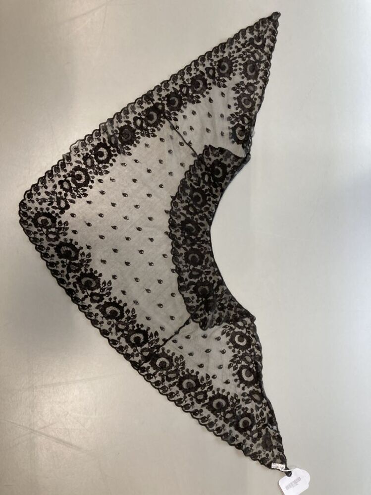 Zwarte fichu met aangenaaide kraag van tule met doorstopwerk