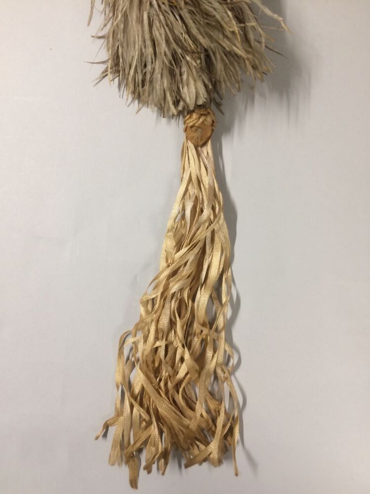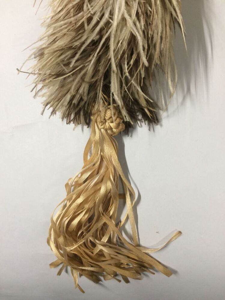 Boa van witte en bruine struisveren met lint-franje