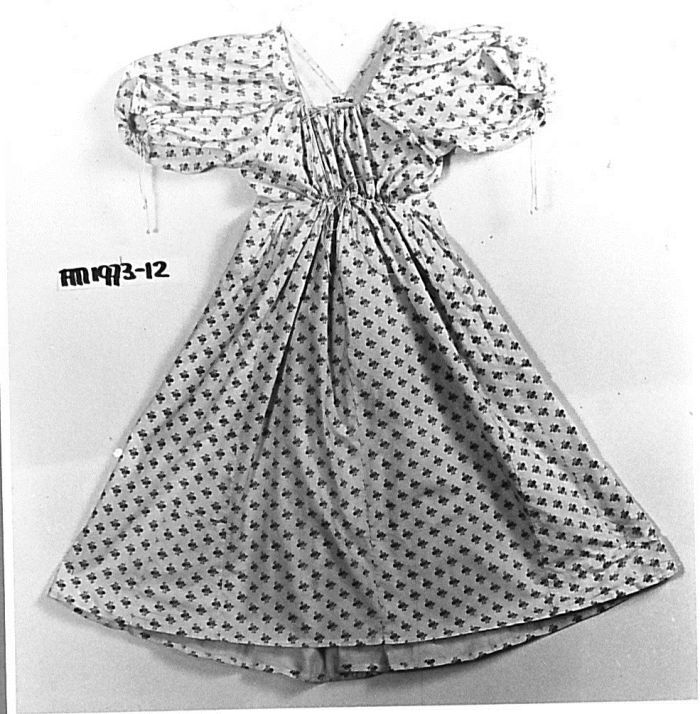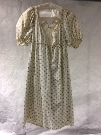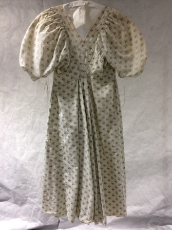 Empire jak met lange schoot en pofmouwen van wit katoen met floraal strooimotief