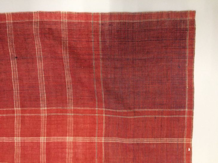 Hindelooper sondook in rood,met wit geruit middenveld en blauwgestreepte randen
