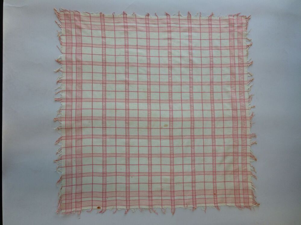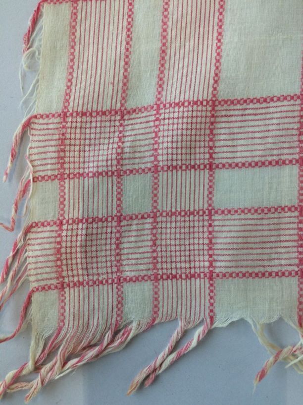 Geruite doek van wit katoen met roze ingeweven strepen