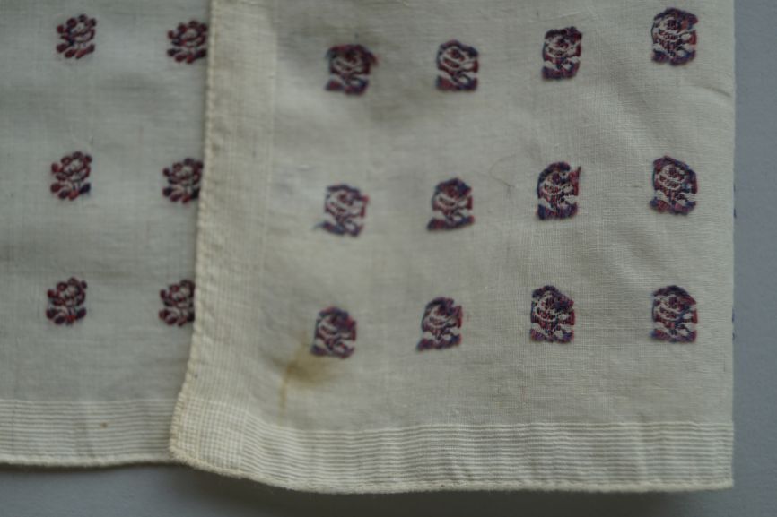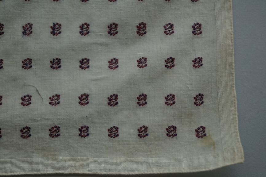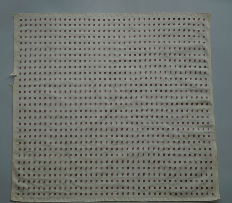 Doek van katoen met wit fond en ingeweven roosjes