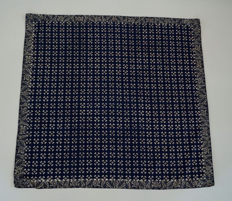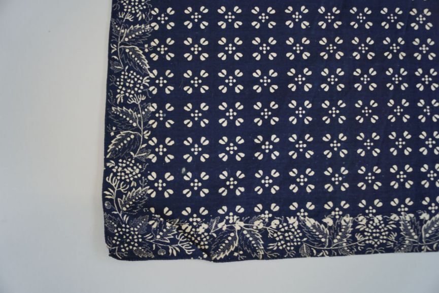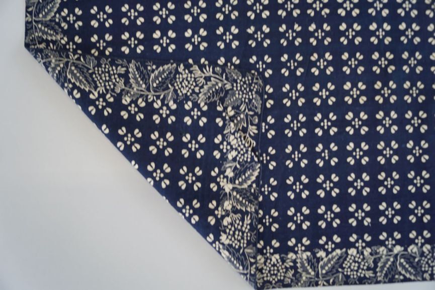 Doek van bedrukt katoen in blauw met wit uitgespaarde motieven, blauwdruk.