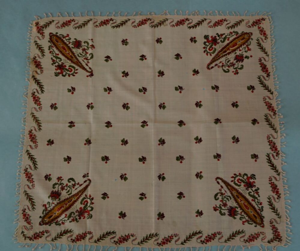 Sjaal van fijne wol bedrukt met Kasjmier-achtig floraal patroon op een roze fond