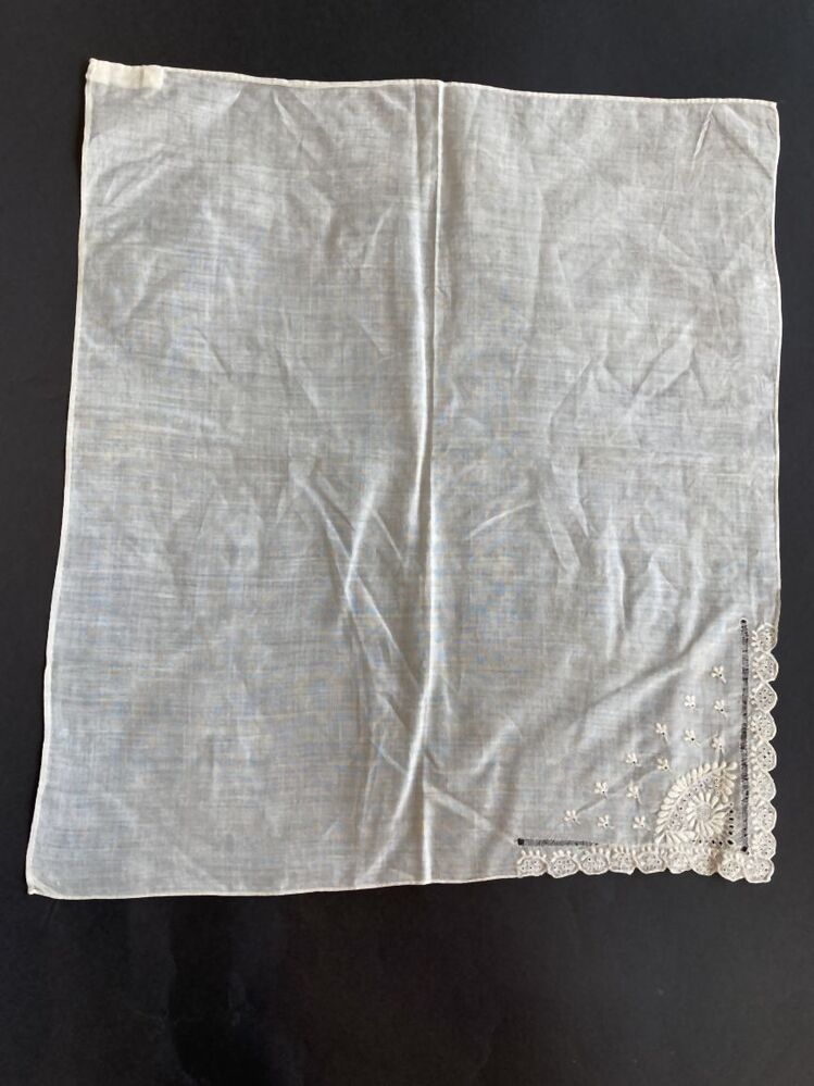 Zakdoek van wit batist verfraaid met frans borduurwerk en open naaiwerk