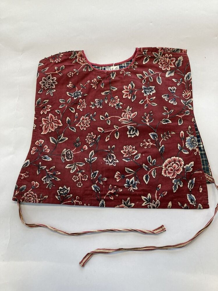 Sitsen vrouwenkroplap ofwel onderst, met grove bloemranken en uitgespaarde uitlopers op rode grond