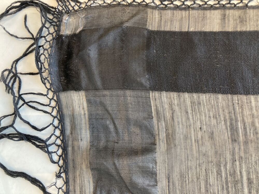 Transparante omslagdoek of rouwsluier, van zwarte wol en zijde, open geweven