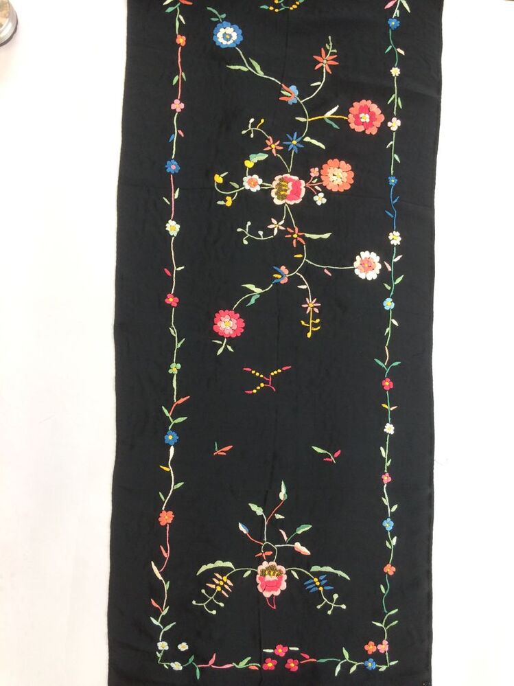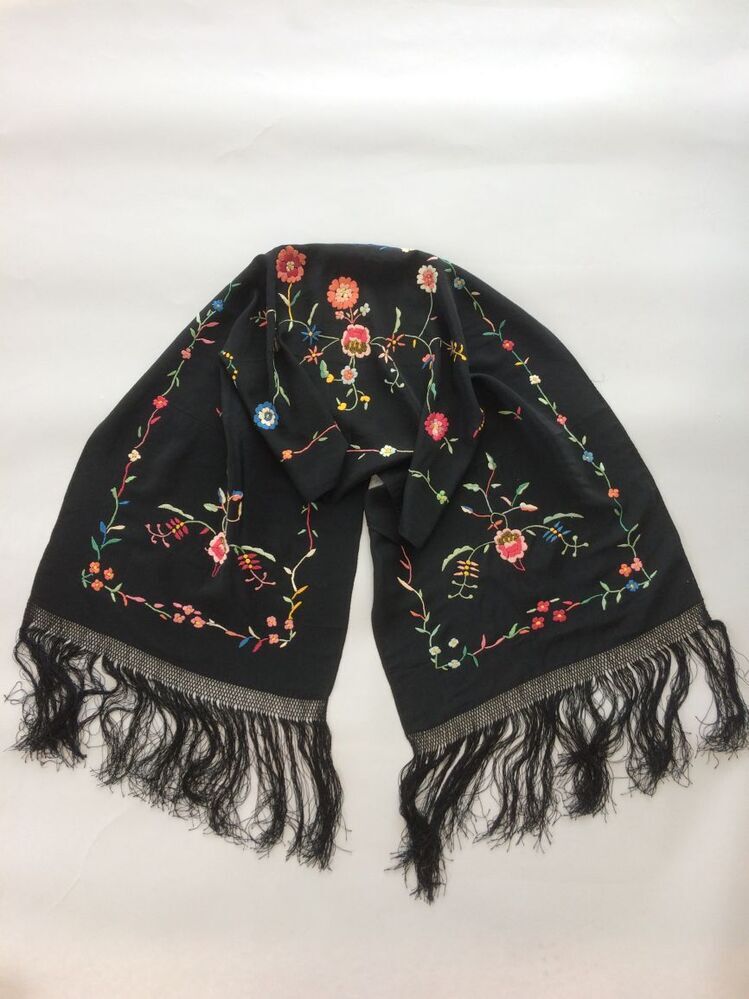 Geborduurde stola of langwerpige sjaal van zwarte taftzijde
