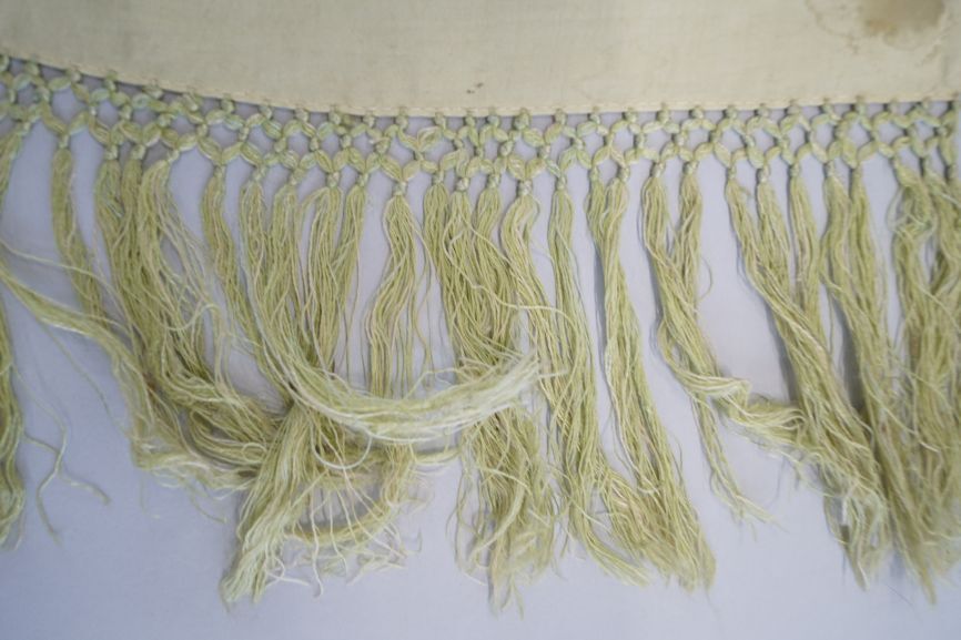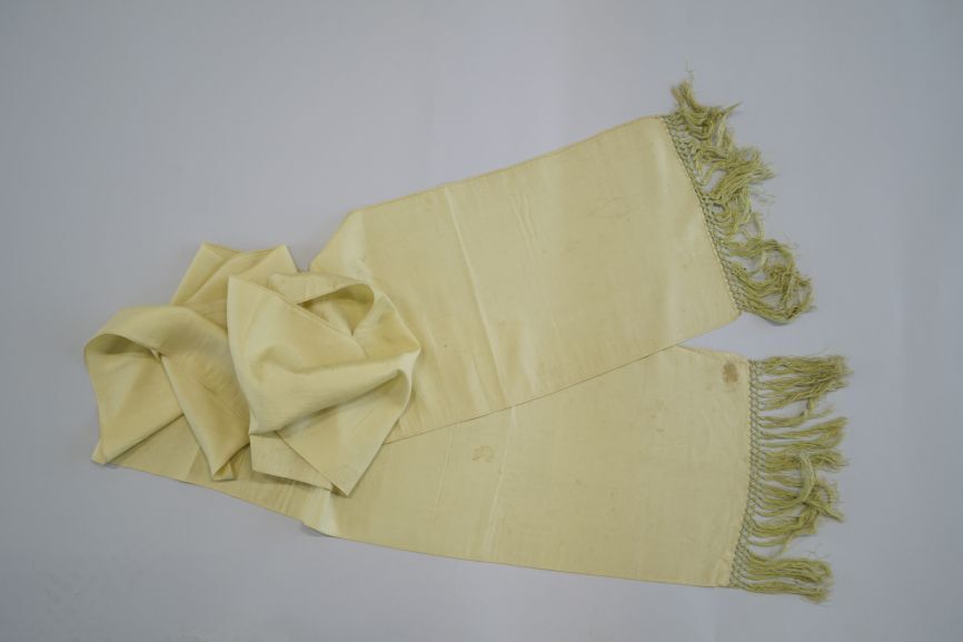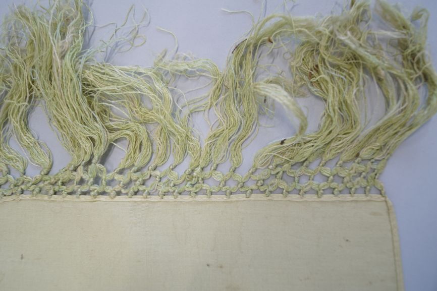 Sjaal van lichtgroene zijde met aangeknoopte franje