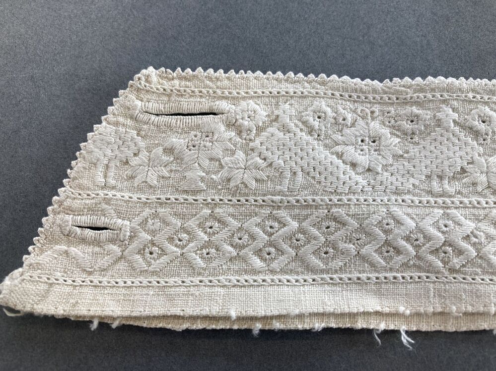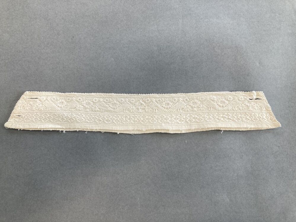 Linnen hemdboord, verfraaid met twee randen witwerk