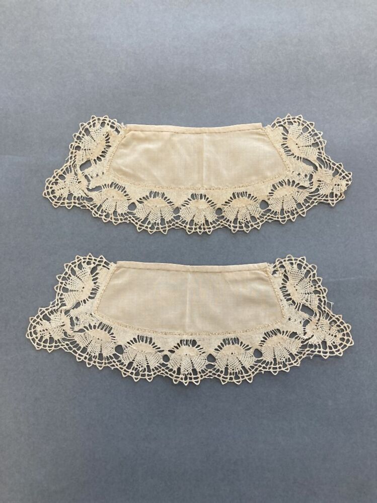 Paar manchetten van shantung zijde afgezet met zijden kloskant