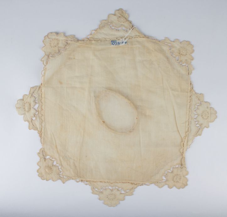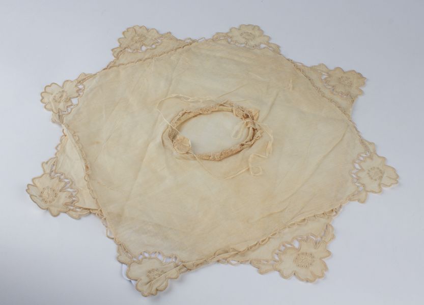 Tasje van batist met machinaal kant en twee zijden strikken
