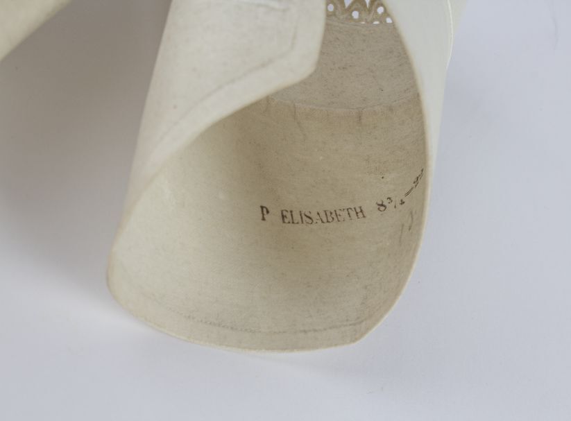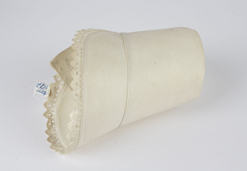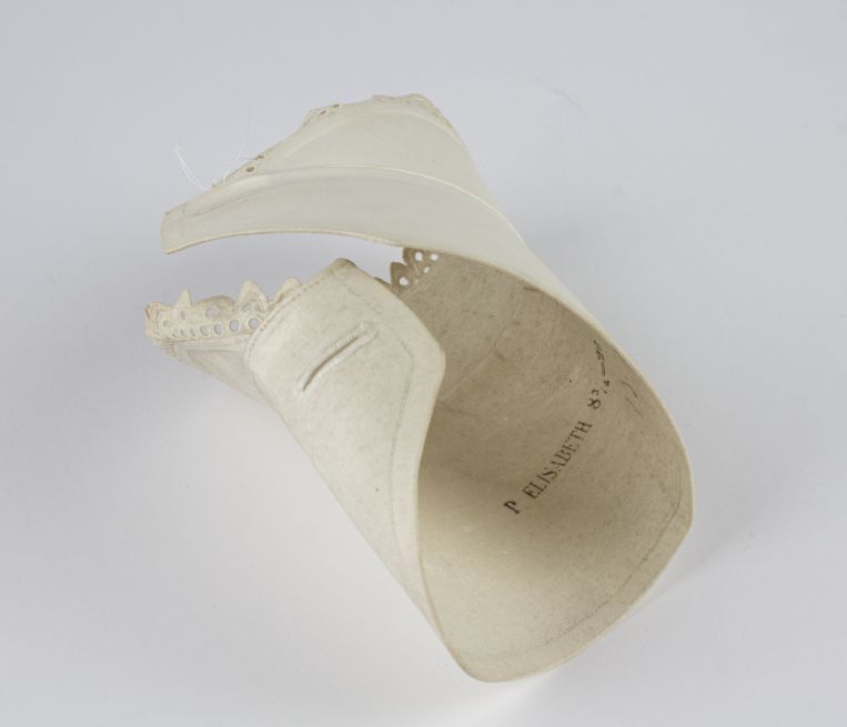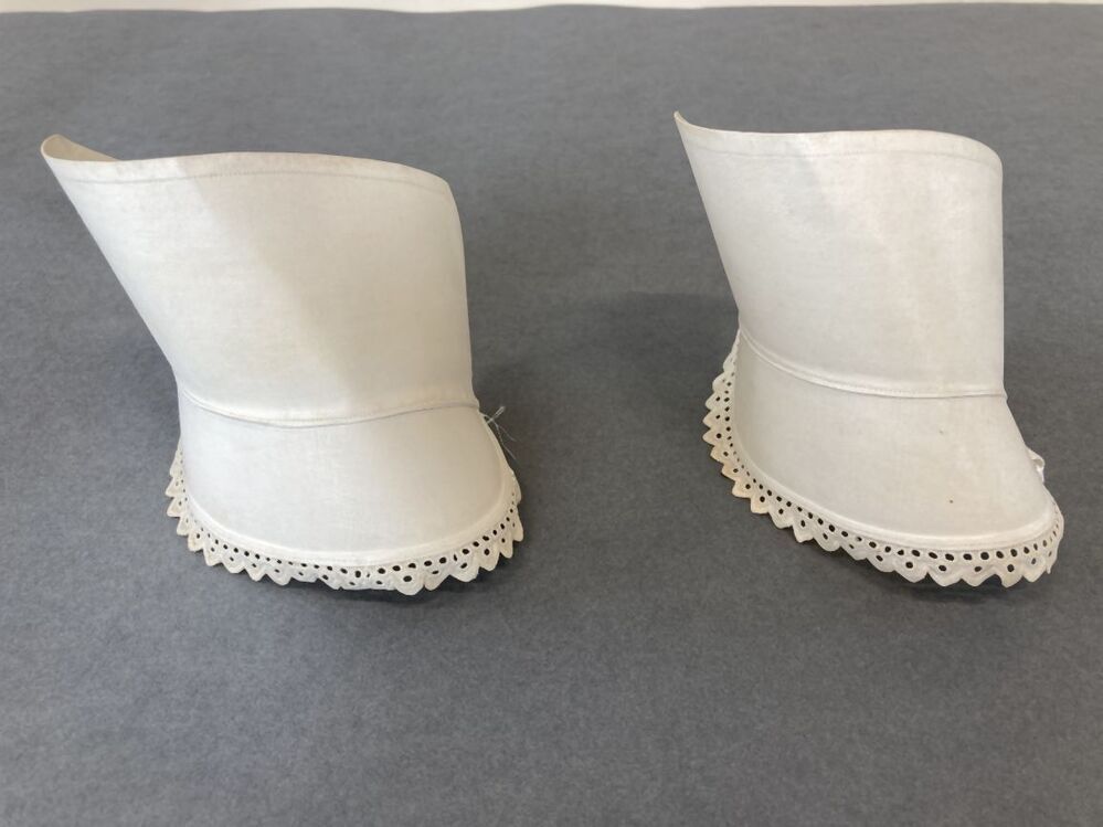 Paar sterk gesteven manchetten van wit katoen, afgezet met broderie