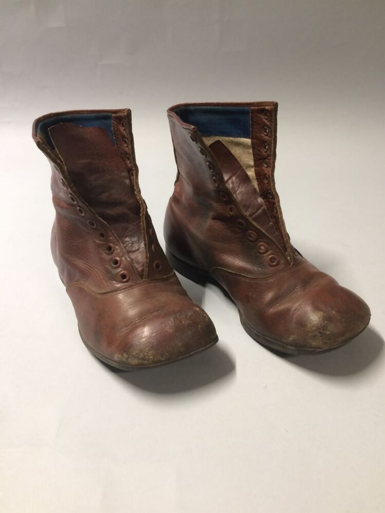 Bruin leren hoge schoenen of enkellaarsjes met vetersluiting, met lage hak en brede neus